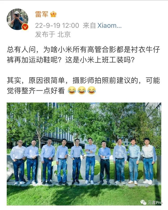 至于这次高管不再以牛仔裤打扮拍照这点,其实与小米进入职业经理人时代很契合。